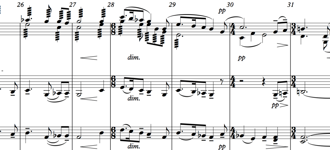 In the previous post we began the examination of Ralph Vaughan Williams’s Fantasia On A Theme By Thomas Tallis, a piece written solely for strings: a string quartet, full string orchestra and a smaller string ensemble. The particular focus was on the detailed notation by the composer.