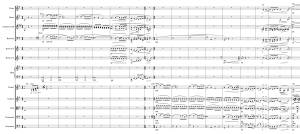 One of the many factors in orchestra writing is to ensure that what you want the audience to hear is heard – and in the way you want them to hear it. Sometimes this is by hitting the audience over the head with auxiliary instrumentation (Percussion always comes to mind). Sometimes it is accomplished by something as ephemeral as asking the strings to crescendo on a long downbow.