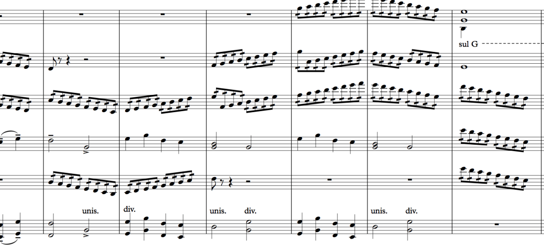 The section continues as the strings divide up the slow tremolos and triplets while the rest of the orchestra sustains the slow melodic line. The very end of the work is brilliant, but I’ve decided to use the passage just before it for the Example 41.7, the final one.